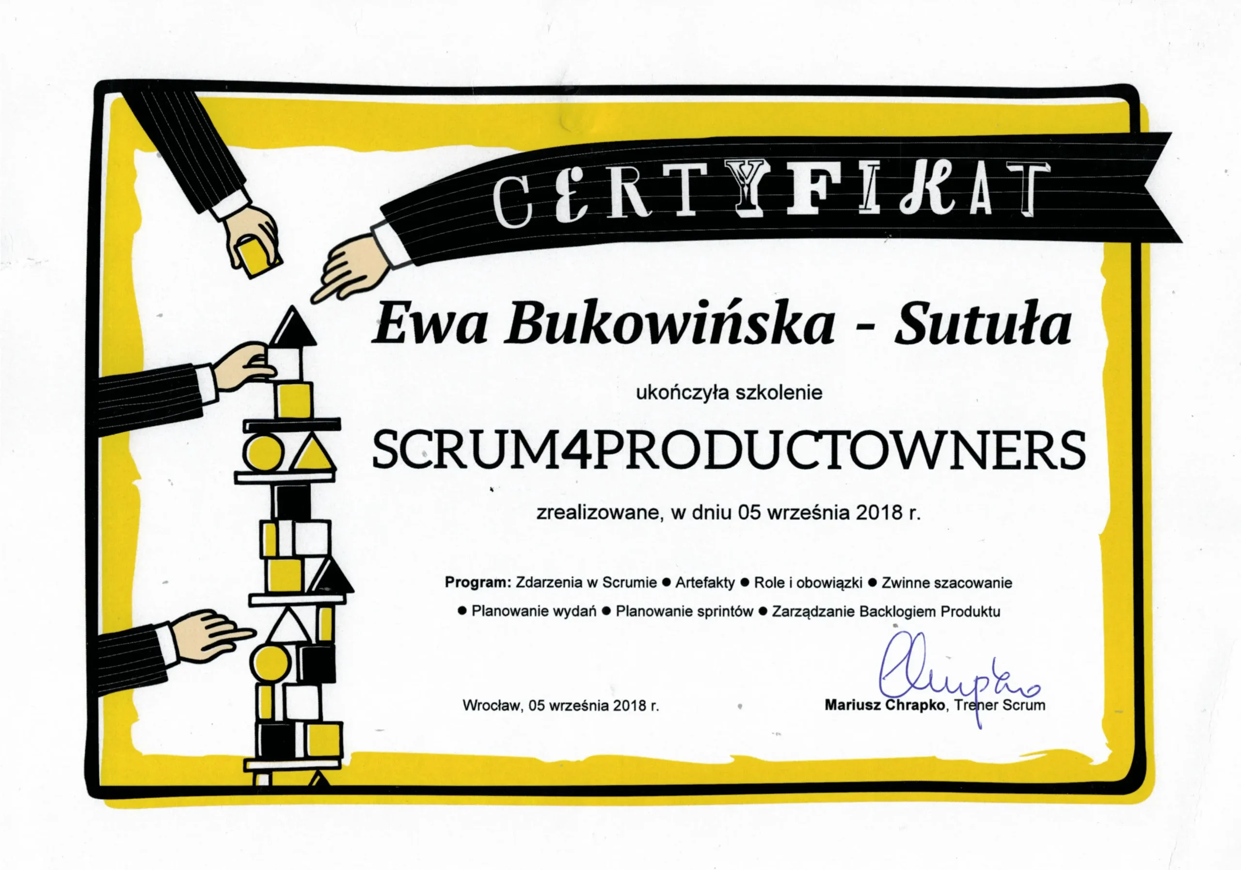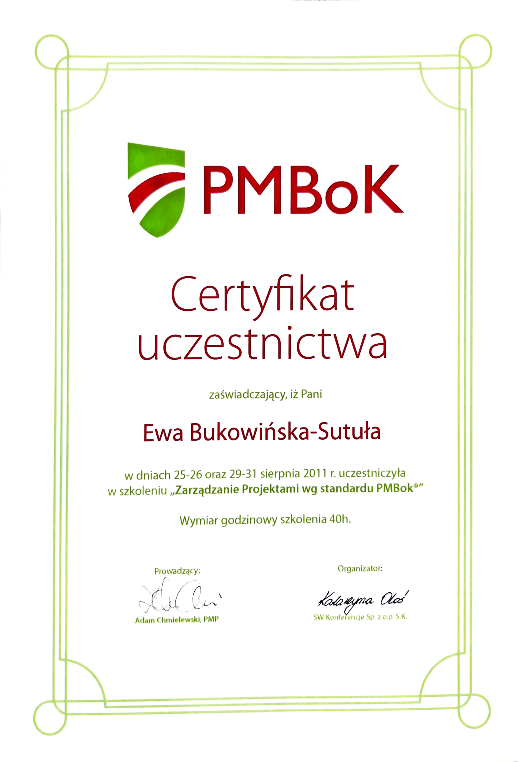 - Praktyk z 18 letnim doświadczeniem menagerskim oraz 6 letnim doświadczeniem kierownika zarządzającego portfelem projektów w dużej organizacji