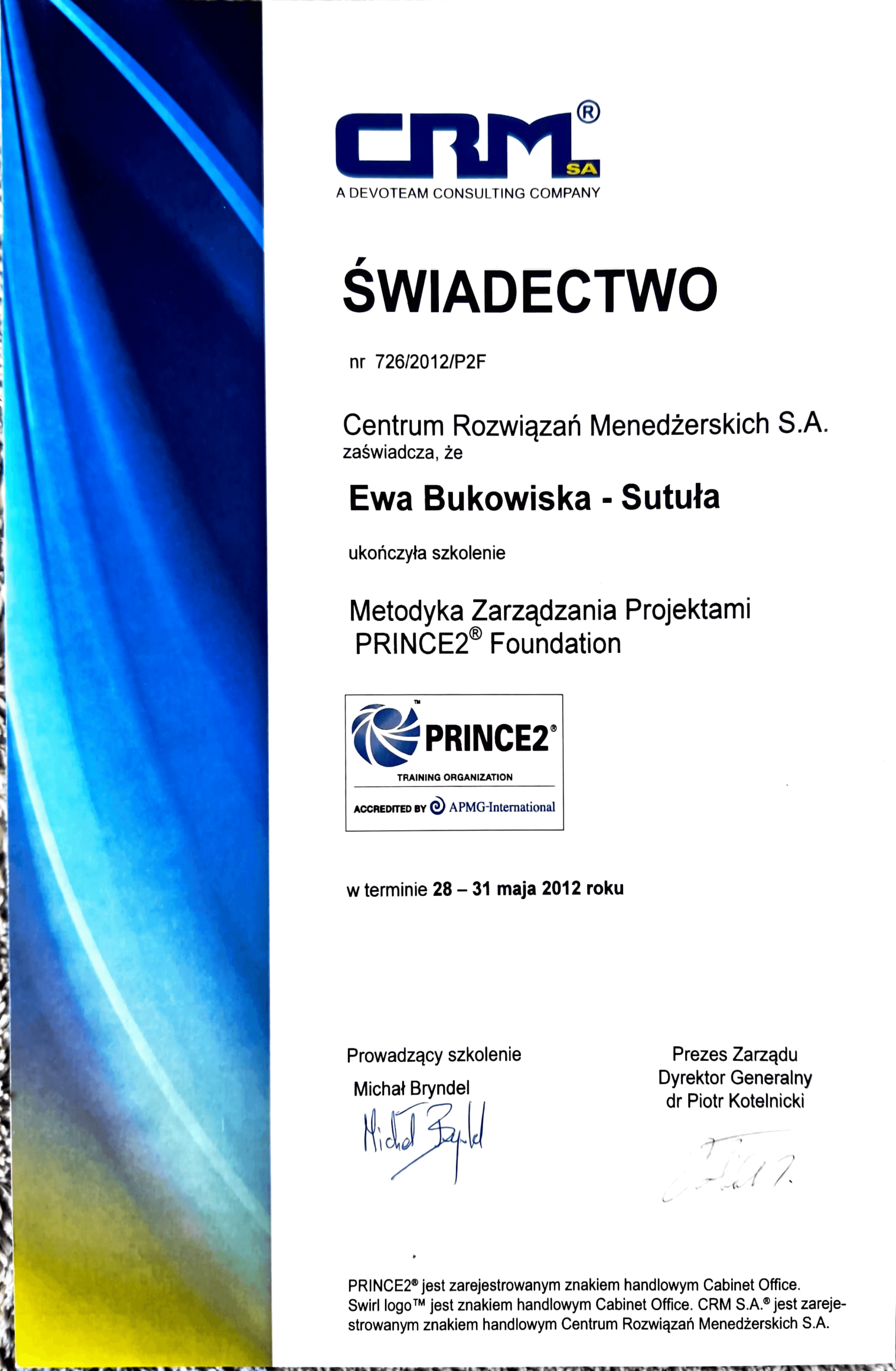 Ewa posiada wysokie kompetencje w zakresie tworzenia w organizacji systemów zarządzania wykorzystujących project management i change management.