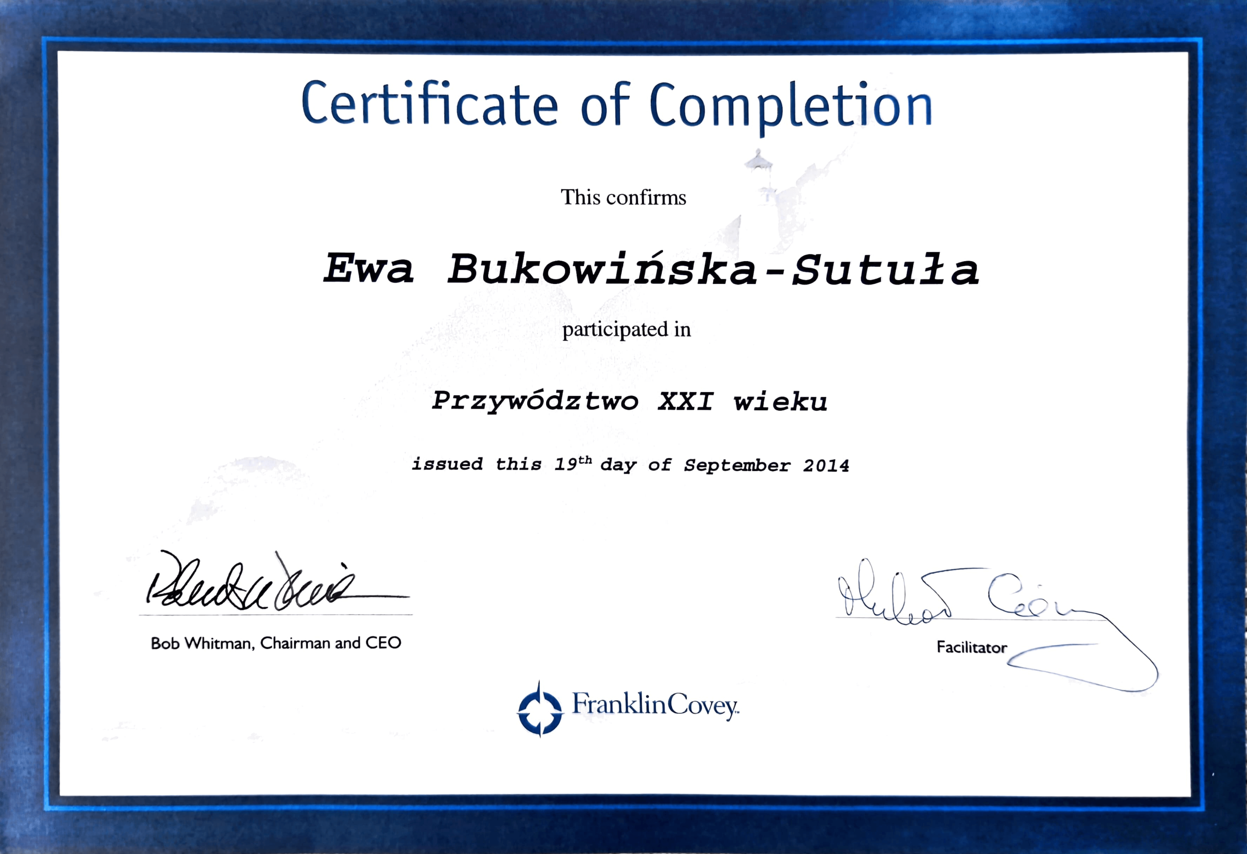 - Moją misją jest wspieranie innych w osiąganiu celów, wierzę, że wprowadzanie zmian jest kluczem do rozwoju i realizacji celów biznesowych i osobistych.