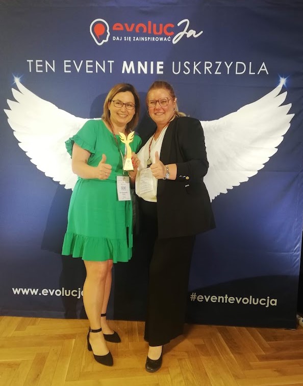 Skrzydła Odwagiwyróżnienie podczas eventu rozwojowego - EvolucJa - za odwagę, pro aktywność, chęć dzielenia się swoją historią, działania na rzecz rozwoju innych.