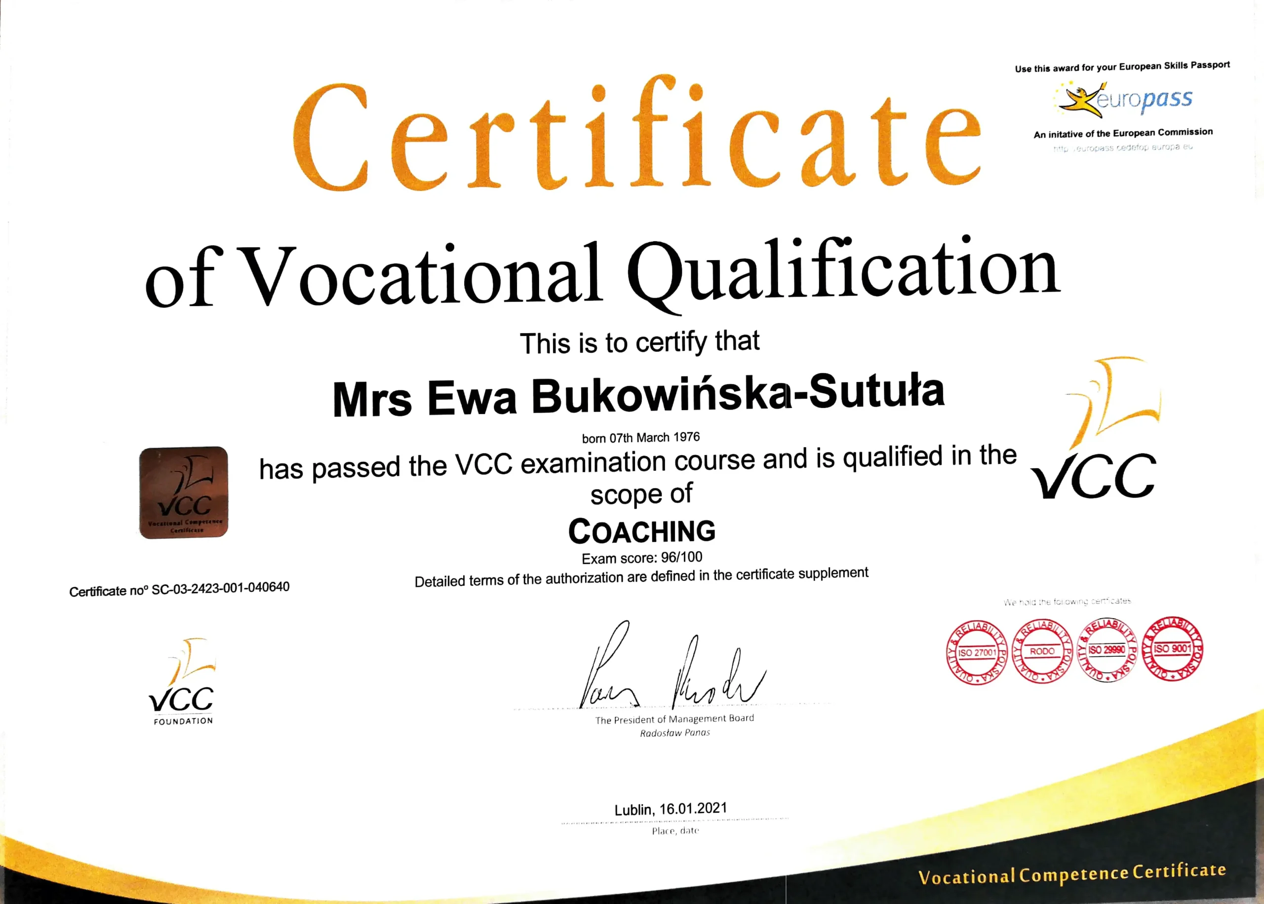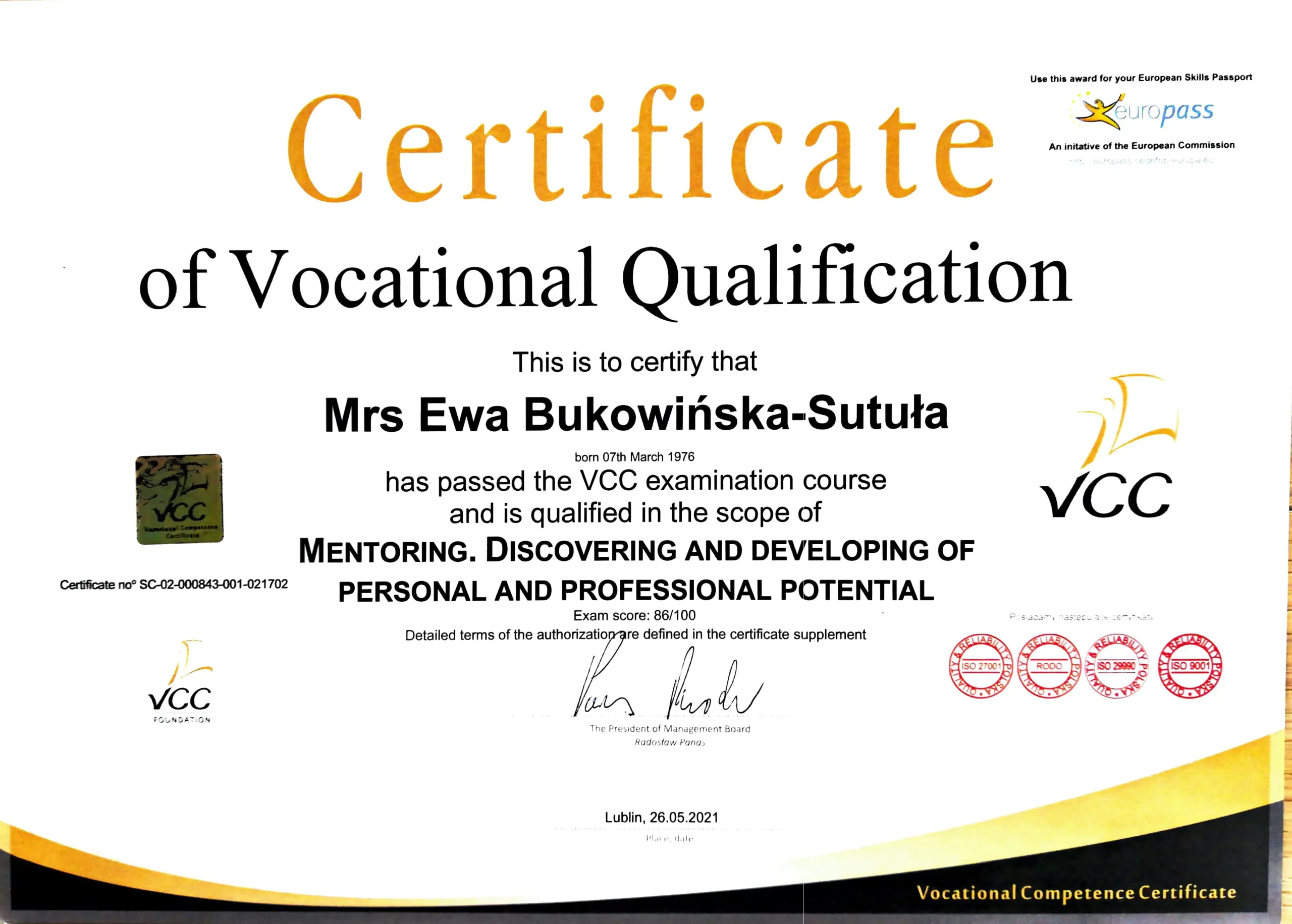 Ewa to wspaniały przykład na to jak umiejętne wspieranie w rozwoju, otwartość na nowe oraz konsekwencja w działaniu wpływa pozytywnie na budowanie zaangażowania i osiąganie wspaniałych efektów coachingowych u jej odbiorców. Ewa inspiruje, zadaje pytania w taki sposób aby odbiorca sam wpadł na rozwiązanie. Przy tym dzieli się swoimi przemyśleniami, jednocześnie jest zdyscyplinowana i ukierunkowana na osiąganie postawionych celów. To bardzo ważny zestaw cech niezbędnych do osiągania sukcesów mentorskich.